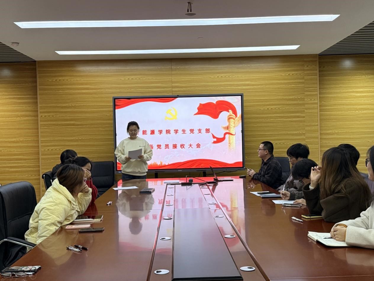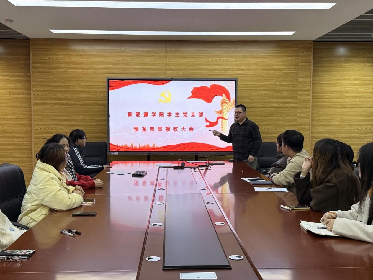 为进一步加强党员队伍建设,为党组织注入新鲜血液,2025年12月29日,新能源学院学生党支部在学院党员活动室召开预备党员接收大会,讨论接收段涛、赵莺琪同志为预备党员相关事宜。会议由党支部书记张坤主持,支部全体12名党员参加。
