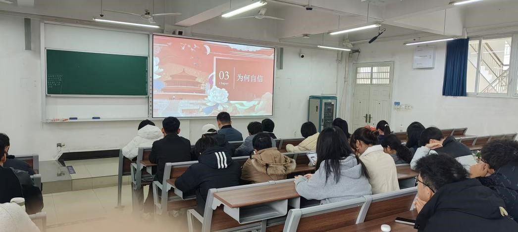 为帮助团员们深刻领悟家国梦的精神内核,筑牢文化自信根基,本次团会特别邀请马克思主义学院 “文脉筑梦队” 开展专题宣讲。宣讲队的学姐以真挚朴实的语言、生动鲜活的案例,从 “文化自信是什么、为什么要坚定文化自信、如何践行文化自信” 三个维度层层递进,深入解析文化自信的核心要义,让团员们对中华优秀传统文化的深厚底蕴、革命文化的红色基因和社会主义先进文化的时代价值有了更深刻的认知。在问答互动环节中,团员们踊跃举手、积极交流,结合自身学习生活分享感悟,现场氛围热烈融洽,进一步深化了宣讲效果。